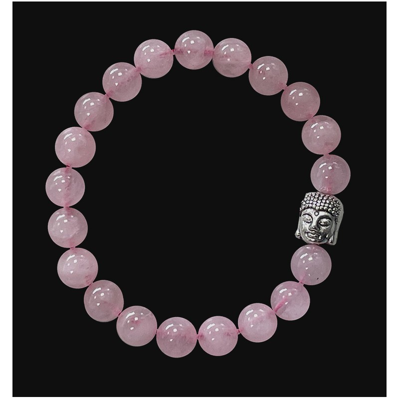 Bracelet 6 mm - Quartz Rose et Bouddha