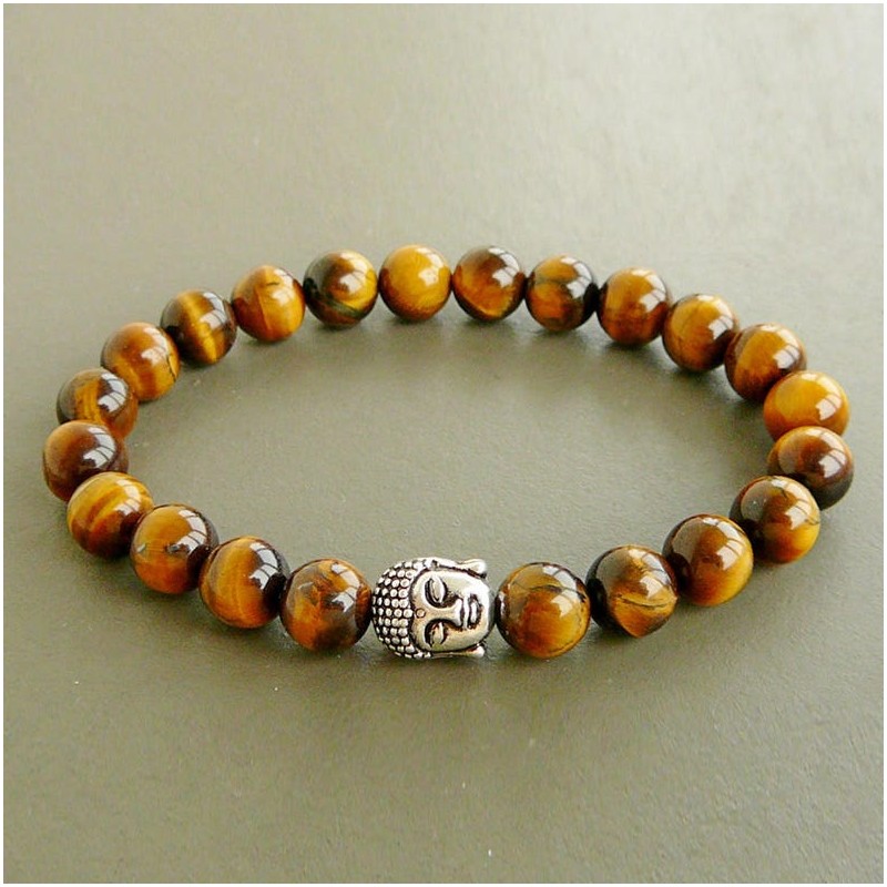 Bracelet 8 mm - Oeil de Tigre et Bouddha