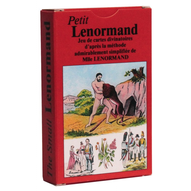Réplique exacte mais en miniature du grand jeu de Mademoiselle Lenormand, ce jeu de 37 cartes contient une notice bilingue expliquant les diverses figures et méthodes de consultation. D'une grande maniabilité, ce jeu initie son utilisateur au monde symbolique et divinatoire. Etui carton.