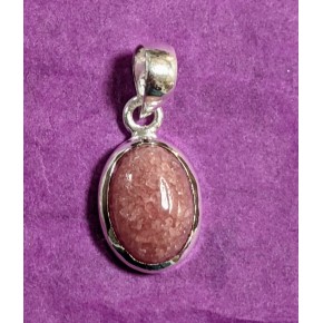 Pendentif ovale argent et turquoise / rhodochrosite ou pierre de lune