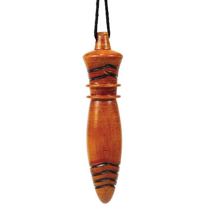 Pendule de Thot gravé en bois d'ébène, vernis et non plombé. Fourni avec un anneau et une pochette suédine. Poids : 18 gr. Hauteur : 7,8 cm. Ce détecteur est la reproduction conforme du pendule découvert dans le sarcophage de la vallée des Rois. Autrefois, il était utilisé par les marins égyptiens pour se guider sur la mer. Il servait aux prêtres de Pharaon pour des opérations de haute magie. Il permet de focaliser la pensée vers un but ou un désir déterminé. D'une grande précision, il tourne et stoppe sans jamais forcer le mouvement