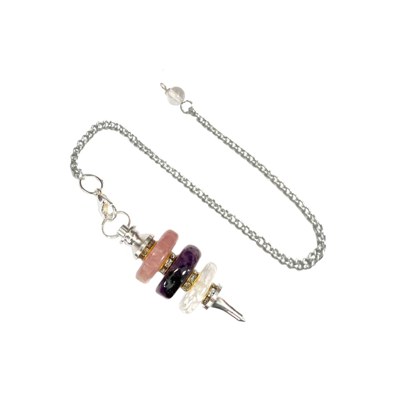 Pendule disques - Cristal de roche / Améthyste / Quartz rose