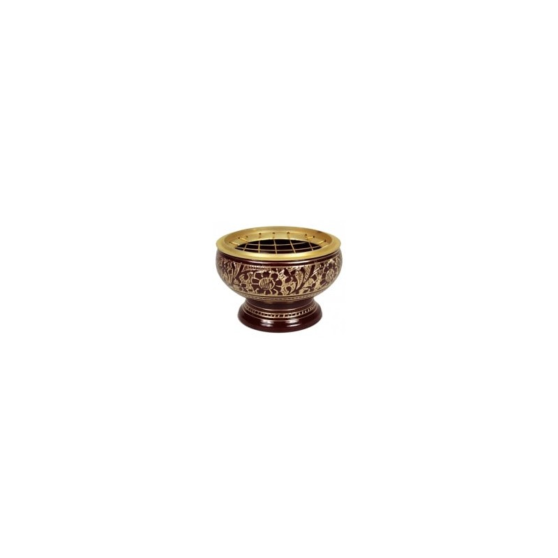 Les brûle-encens permettent de brûler en toute sécurité les différentes variétés d’encens : grains, poudre, bâtonnets, cônes, cubes… Modèle de couleur bordeau et noir avec des motifs dorés.